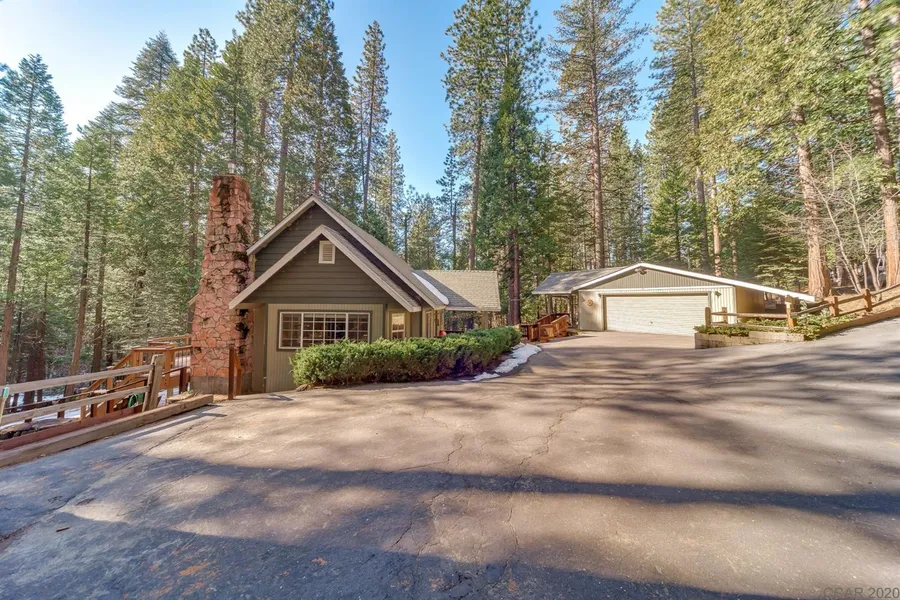 Set back from the street in a park like setting is this cute forest gem ready for your enjoyment! This beauty features 2 bedrooms, 1 bath and an open great room with an exposed beamed trusses and pine vaulted ceilings. This grand kitchen was remodeled in 2016 with all new cabinets, stainless steel appliances and sink, new flooring, granite counters and lighting. The oversized garage has a bathroom with a toilet and shower for a quick clean up after a day at Pinebrook Lake. You can walk to Pinebrook Lake for a fun day of fishing and swimming or enjoy the great privacy on the trex deck in the back which overlooks the horse shoe pit and seasonal creek. This place shows pride of ownership! You won't be dissapointed!