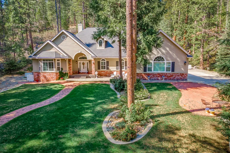 Truly Stunning and Exceptional! This spectacular and rarely available single-story residence in the Fly-In Acres community will take your breath away! This Entertainer's dream home features a beautifully landscaped 1.34 acre gently sloped lot nestled in a secluded tree lined setting; with expansive gardens, lawns, entertaining areas, horse-shoe pit, covered outdoor kitchen, walk-up bar, and a peaceful waterfall flowing in from the hillside. The expansive and open floor plan is perfect for entertaining and family gatherings, with amenities such as an oversized great room with cathedral ceilings, gourmet Chef's kitchen, designer home office, 3 car garage with workshop, and large family dining area that connects to an outdoor living oasis. The details of this home are endless with hand crafted carpentry and cabinetry throughout and so much more!