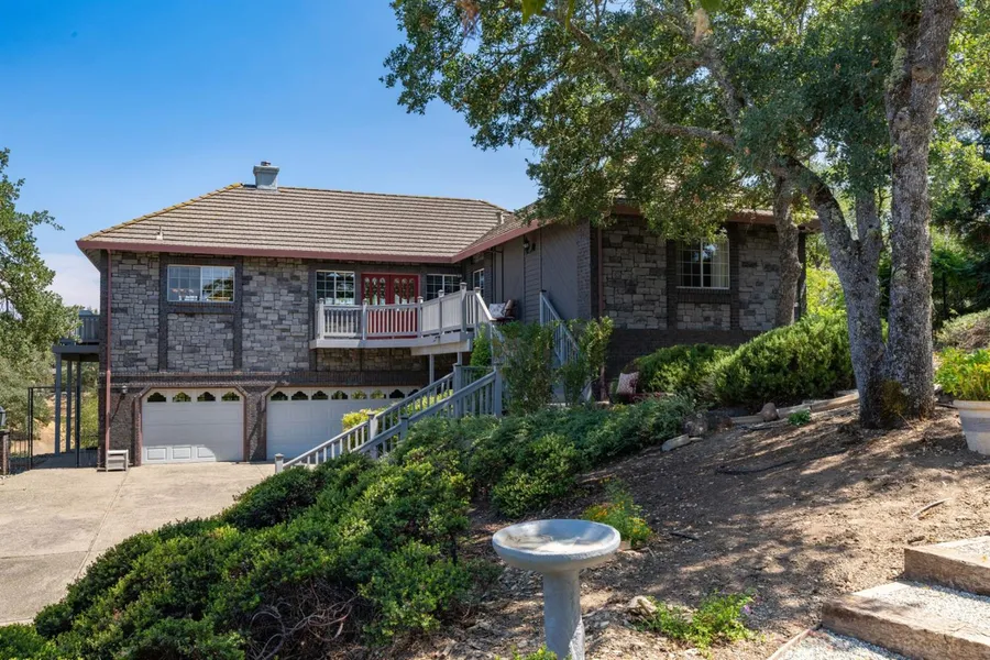 Private setting for this spacious La Contenta golf course Community home, located in the Foothill Community of Valley Springs on a quiet cul de sac. Across the street from the championship golf course and less than 3 miles to New Hogan reservoir. Enjoy the French Country inspired decor of this spacious 3 bedroom 3 bath home plus a den or potential 4th bedroom with quality finishes throughout. Step into the great room with cathedral ceilings and a wall of windows overlooking the natural landscape with lots of oak trees and view of the year round pond in the back yard. Gourmet kitchen with stainless appliances open to the great room and formal dining room area. Central heat and air as well as a free standing wood burning stove and brick hearth. Master suite with access onto the Weyerhaeuser choice decking. Walk in tile shower and dual vanities in the master bath. Two guest bedrooms on main level with a 4th bedroom or den with full bath downstairs with private access, perfect for extended family or guests. Enjoy the spacious laundry room with extra space for a home office. Set back off of the private street with paved level driveway and cobblestone accents that lead into the 815 sq. ft. 3 car garage. So much to offer. Make a move to the foothills. Public water, sewer and high speed internet, everything you need to work or learn from home.