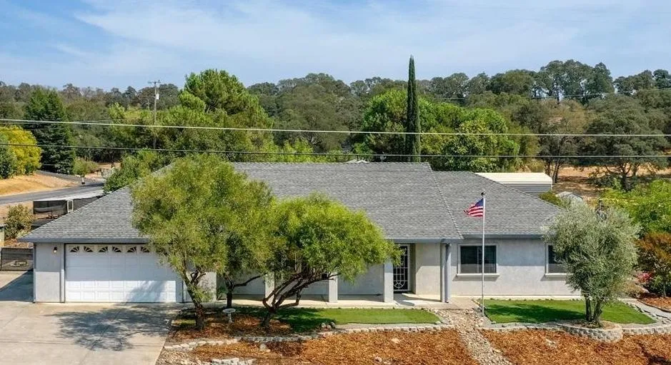 This well-maintained home is move in ready, located on a .56-acre corner lot with lots of privacy. The interior features gorgeous bamboo flooring, open floor plan, vaulted ceilings and corner gas log fireplace in the living room. The kitchen has beautiful wood cabinetry, tile floors and large dining area, all open to the family room and with access to the amazing patio & back yard. Spacious bedrooms with ceiling fans. Low maintenance exterior with stucco siding & composition roof. The back yard is all fenced & cross fenced (including 2 ranch gates). The seasonal creek, turtle pond & raised bed gardens will surely be a treat for the whole family, having fresh fruit & veggies all year round. Fruit trees include fig, apple, pomegranate, pears, lemon, pluot, four varieties of wine grapes & three varieties of table grapes And the drip system will make maintenance a breeze. There is plenty of room for a shop, RV and boat parking. Come and take a look at this beautiful home and fall in love with the setting. Located just minutes to New Hogan Lake, La Contenta Golf Course, Wine Tasting & all the Gold Country has to offer.