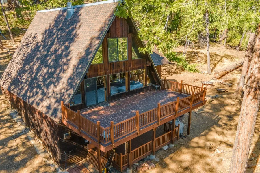 Rustic A-frame in the highly desirable Lake Mont Pines neighborhood. One of the most sought after locations it boasts a gorgeous private lake and trail head access to Arnold Rim trail. The cabin itself is situated on a uniquely large 1.43 acre plot. See nothing but trees from your back deck with peekaboo views to mountains beyond. Enjoy plenty of space to play, s'mores in the fall, sledding in the winter-you never have to leave your own back yard! The home itself has windows that give you sweeping views of your own forest. Two bedrooms, an additional sleeping loft(currently used as the master), two baths. Plenty of space to sleep friends and family. The lower level while unconventional gives the pre-teens/teens a place hang. Fresh exterior stain 2021, new water heater 2020, newer update to the kitchen (granite countertops), great WiFi. Appliances stay. Home is sold mostly furnished. Move right in and enjoy the outdoorsman life the Sierra Nevadas offer!
