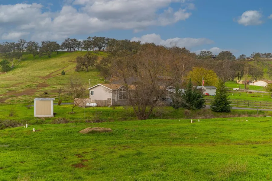Make a move to the foothills. Great country setting on usable corner 0.61 acre lot in the Foothill Community of Valley Springs. Near 3 lakes & recreation. Enjoy the wildlife out your front door. Step inside to the desirble and open floor plan of this spacious 2005 manufactured home with 2 bedrooms 2 baths plus a den. Open concept with spacious master bedroom featuring a walk in closet, vaulted ceiling and deluxe bath with saoking tub and walk in shower, master is private from guest bedroom. Enjoy the den and use as a media room, home office or potential 3rd bedroom. Vaulted living room ceiling with lots of natural light, very efficient per owner with low utility bills. Gourmet granite kitchen with newer gas range, lots of cabinets and pantry area. Convenient inside laundry with access out onto the coverd deck. Central heat & air, public water & septic system. High speed internet. Detached oversized extra deep and wide 2 car garage with 110 outlets and lighting, approx 576 sq ft. Two metal carports, for RV & boat storage & parking. Paritally fenced yard, suitable for farm animals. Paved and level driveway. No Home owner's association or monthly dues. So much to offer.