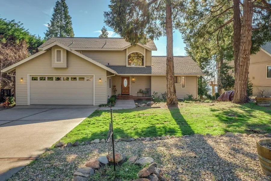 Location, location, location...AND views. Beautiful 3 Bed/2.5 Bath 2165sf 2-story home (primary bedroom on main floor...mostly single story living) located in the gated community of Forest Meadows (just minutes from downtown Murphys, wineries and golf...or a short drive to skiing, boating or Big Trees State Park). Main level includes a sunken living room, dining room, kitchen with dine-in counter and nook with access to back deck, primary bedroom with en suite and access to private second deck, laundry room, 1/2 bathroom and 2-car garage. Upper level includes a loft (currently used as an office), two bedrooms and a full-bathroom. Features: Stanislaus River Canyon views, walking distance to park amenities, level driveway, vaulted ceilings, central heat & air, fireplace woodstove, covered front porch and two decks. New updates: Dual pane windows and paint in living room, refrigerator, back...