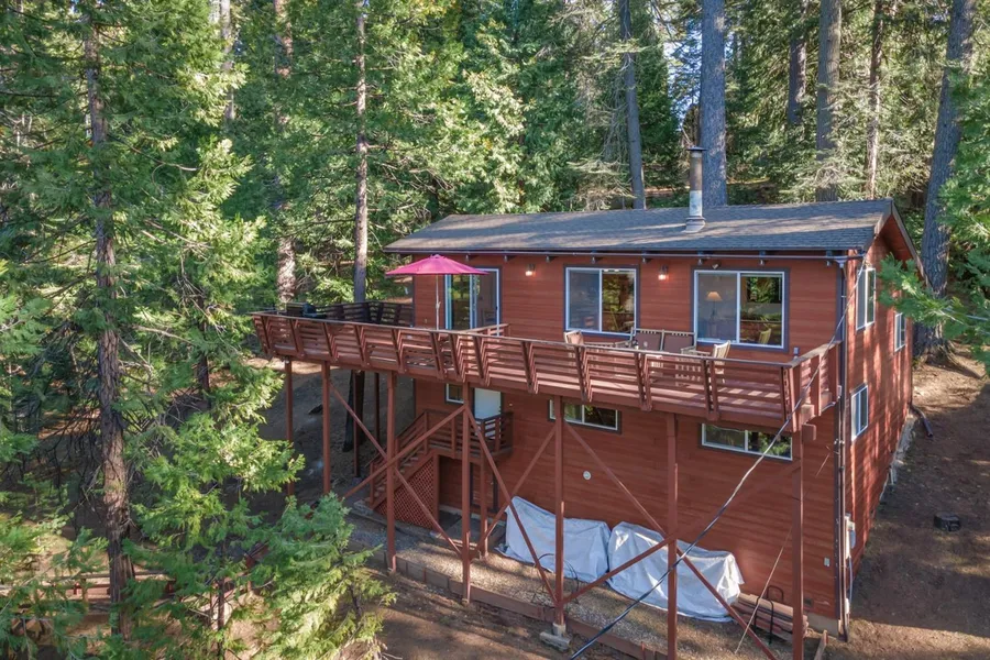 Nicely Maintained Blue Lake Springs Cabin with Cement Lap Siding, Nice Dual Pane Windows, Vaulted Pine Ceilings, Central Heat, Fireplace and Great Tree Views(Seller loves the privacy front deck offers).Some of the Features are 3 Bedrooms, 2 Bathrooms and Familyroom plus Many Wood Accents Throughout the Cabin.