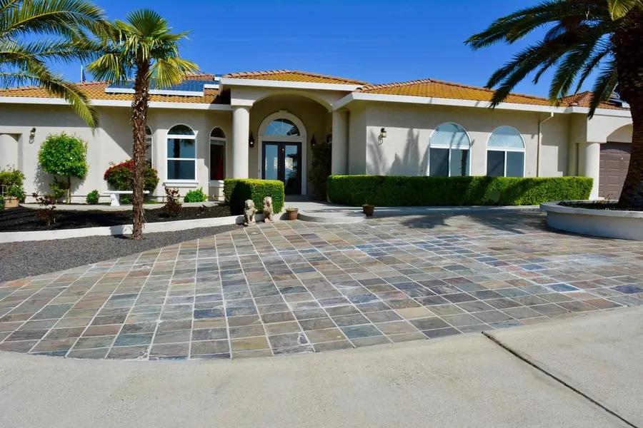 Welcome home to the best of both worlds! Truly special location and setting for this elegant custom home. Located in the desirable La Contenta Golf course community on a private hill top, surrounded by open rolling hills, presenting 360 degree, panoramic views. Admire the neighborhoods lush green tree tops, a glimpse of lake Hogan just beyond the dam, snow caps of the sierra mountains, and Rejoice in breath taking sunsets with an illuminated Mount Diablo. Surrounded by 20 spectacular Palm trees along with low maintenance land scape. Paved driveways provide extra RV parking along with full hook ups. This Home features 4 bedrooms and 2 full baths and has been completely updated in luxury and elegance with a hint of country charm. An array of windows and sliding glass doors allow plenty of natural lighting, in addition to capturing the beautiful out door views. Vaulted ceilings along with a...