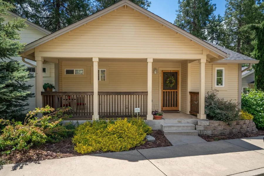 Location and views! Built in 2006 this 1560sf 2-story (previous model unit) townhouse overlooks the First Fairway of the Forest Meadows Golf Course. This highly desirable end unit is located in the gated community of Forest Meadows (close to park amenities or just minutes from downtown Murphys, shopping and wineries...or a short drive to skiing, hiking or boating). Main level includes: covered front porch, kitchen, dining/living room combo with gas fireplace, back deck, primary bedroom, bathroom and laundry closet. Plus two additional bedrooms (optional primary bedrooms) with ensuite bathrooms on lower level with access to patio. FMOA amenities include: buried utilities, public water/sewer, security gate/patrols, clubhouse, two parks, pools, tennis/pickleball/bocce courts, playgrounds, dog park, trails and so much more. Fairway Owners Association dues cover: Exterior maintenance, roof, insurance, irrigation, landscaping, road and trash.