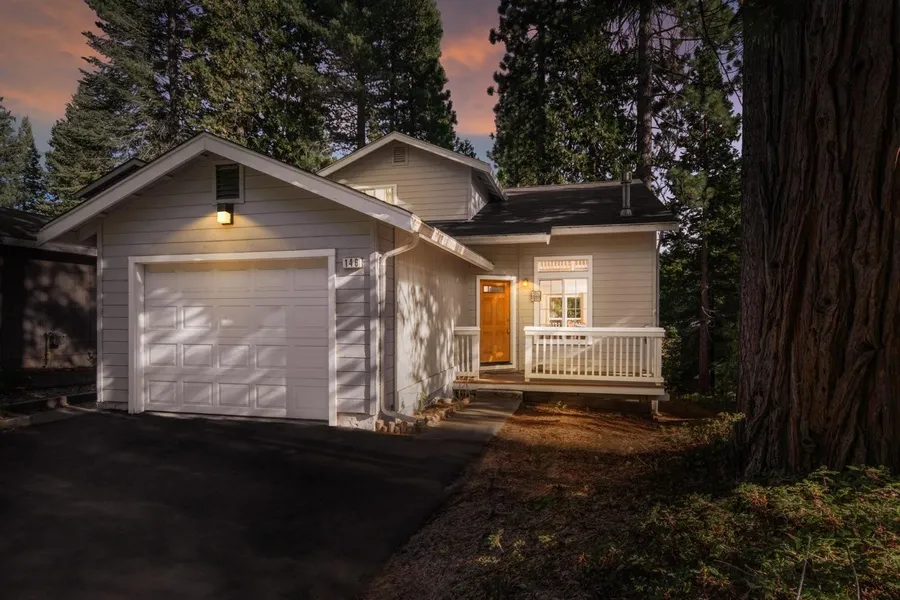 For climate and ease of living, you won't find a better location in Arnold! Walk into this beauty with it's open great room with knotty pine vaulted ceilings and a newer propane stove. The sliding glass door off the dining room takes you to the outdoor entertaining area with an expanded deck and room for dining, barbecuing or just relaxing in the spa hot tub. The primary bedroom is on the main floor and there are 2 bedrooms upstairs, a full bath and an open loft large enough to sleep extra people or just relax or play games. The updated Central A/C and Heat along with the propane stove allows for comfort all year round. The garage can also be used as a game area with it's insulated walls which have been finished and painted. Roll the car out and you have an extra space for playing games or just hanging out! The community recreation center is another great place to explore with it's club ...