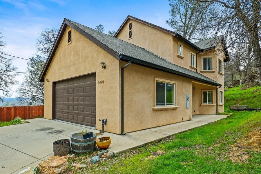 Enjoy the peace and quiet of this Sunset neighborhood located in the charming town of San Andreas, the county seat of Calaveras County. This custom home has a great layout with an open concept great room with bay windows, an oversized dining room which gives abundant room for family or friends. The kitchen has 5' cabinets, granite counters, tile floors, & walk-in pantry, giving you so much storage. Need more storage? There's another long storage room under the staircase in the kitchen. The master is lovely, with a bay window, lots of light, and walk-in closet + additional closet for the other. Other amenities include 9' ceilings throughout giving such an open feeling to the rooms, fans in all the rooms and carpet upstairs for warmth & comfort. The property is stunning, very low maintenance and has the most beautiful rock outcroppings making lovely areas for seating, a hot tub, or hiding ...