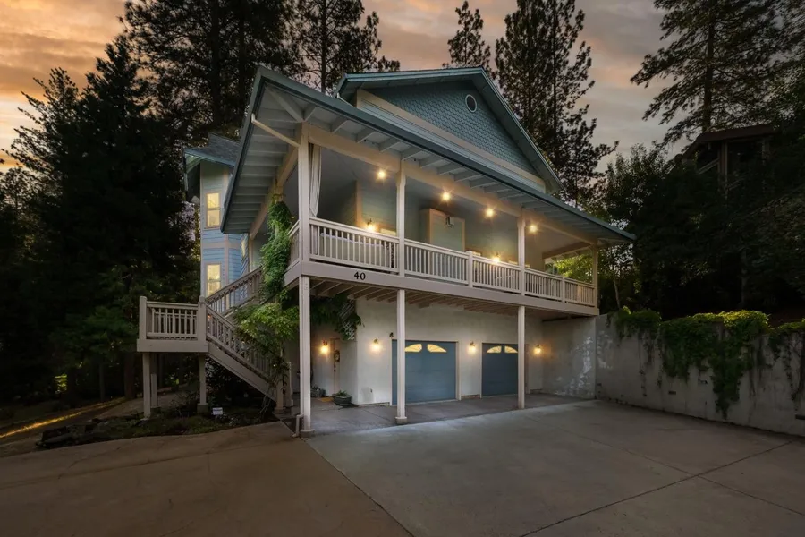 Exquisite quality crafted custom home with pond and golf course views. Located on a secluded court in the gated community of Forest Meadows (adjacent to golf course and just minutes from downtown Murphys, wineries...or a short drive to skiing, hiking or boating). Main level includes: Living room with wet bar and gas fireplace, dining room, commercial grade gourmet kitchen, a full bathroom and 2 bedrooms with access to deck and dog-run. Upper level includes: Large primary bedroom with walk-in closet, sitting area with access to private deck, primary 5pc bathroom includes a large walk-in shower, soaking tub and separate WC, laundry room and a spacious family room/office/library combo with floor to ceiling bookcases and built-in ladder. Lower level includes: 1459sf 3-car garage with workshop area and large storage room. Some features include: Powered dumb waiter, Nest thermostat, Ring doorb...