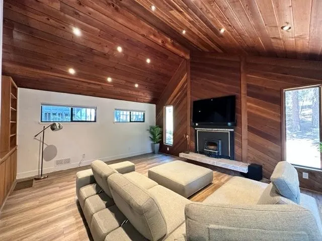Charming mountain home in the gated golf course community Forest Meadows. Updated in a contemporary style that shows nicely with all the natural light throughout the home. Beautiful living room with exposed wood and a cozy wood burning fireplace. Great separation of space with stairs that divide the living spaces from sleeping quarters. Several decks and plenty of spaces to relax and enjoy the beauty of the outdoors. Enjoy beautiful snowy days relaxing, or go skiing at Bear Valley Resort only 38 miles up Hwy 4. Tesla charger in garage and updated electrical in living room for your modern entertainment gadgets.