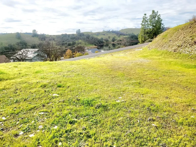 Front and center lake views from this lot directly across the street from water frontage. Walking distance to docks, launch and several small parks with picnic tables and a playground. This lot is in Lake Tulloch Shores gated community, where residents driving golf carts roam about the subdivision to take advantage of the lake front amenities. If you have a vision for a lake house this could be the lot to build on. Corners have been marked by a surveyor and seller has had plans drawn for a 1500+ Sq. ft home 3 bed 2 bath and garage which will convey with the purchase of the property. Copperopolis is about an hour commute to the central valley.