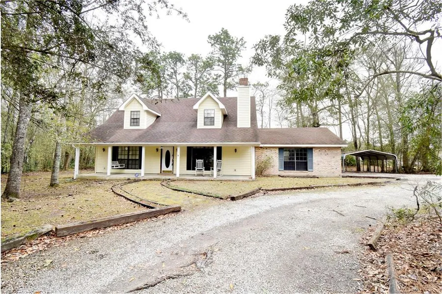 This beautiful 3 bedroom, 2.5 bath Acadian style home is nestled behind a naturally landscaped tree lined driveway giving it a secluded country feel. From the natural light entering the dining room bay windows to the corner wood burning fireplace, this home encompasses you with a cozy and inviting feeling. The kitchen boasts handsome cabinetry with ample counter space for gatherings and entertaining. The large master bedroom suite features soaking tub, shower, dual sinks and a generously sized closet. Upstairs you will find 2 over sized bedrooms with a bonus space that can be used as a media area/second living area or office nook. There is also a covered back patio that overlooks the fenced in back yard. Large lot with mature trees and plenty of parking.