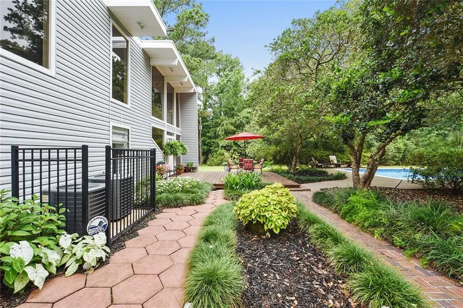 *Contingency offer - 24 hour 1st right of refusal* This 4 bedroom & 2 1/2 bath home is situated on 3 1/2 acres laden with trees and natural landscape. Scenic views from every room with plenty of windows to capture the serenity of the environment. Contemporary in design yet warm and inviting interiors enhanced by hardwood floors. Living area has soaring ceilings with a wall of windows flanked by separate dining area with built ins. The kitchen has sleek white cabinetry, stainless appliances and granite countertops. All bedrooms conveniently located upstairs with an open loft living area overlooking the pool and beautifully landscaped back yard. Master suite is generously proportioned with large bath. Three other spacious bedrooms all commanding tranquil views of the surrounding property. There are terraced decks leading to the pool that is surrounded by mature landscaping to create a secl...
