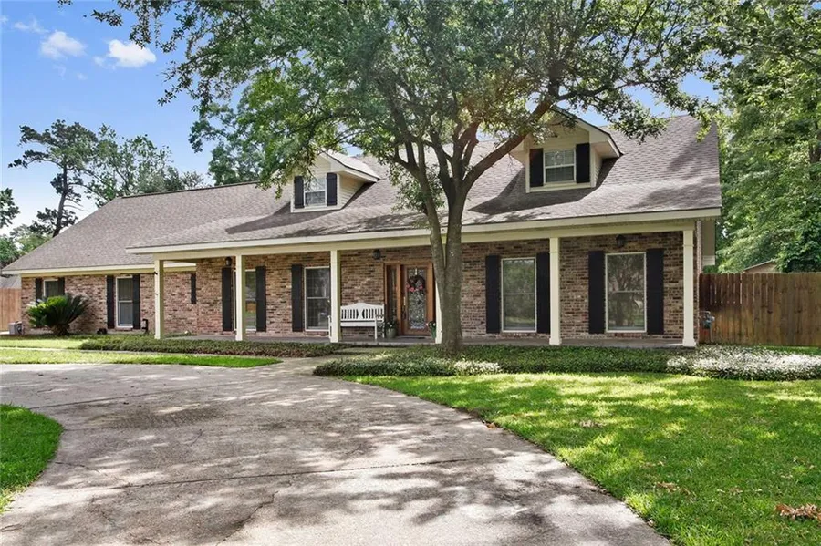 Two Story Traditional on large lot with mature trees. This home is a one owner home and perfectly maintained. Classic in design with a circular drive expected of a true traditional style home. Large living room with full masonry fireplace flanked by open breakfast area with a wall of built ins. Separate formal dining room off the foyer. Kitchen boasts ample handsome wood cabinetry, quartz countertops, double ovens and large walk in pantry. Master suite has double closets and cozy master bath with double sinks and separate tub and shower. Upstairs are 3 additional bedrooms, 2 full baths, gameroom/media room, study and closets galore. Home also features large laundry room, powder bath and large screened in patio for outdoor entertaining overlooking privacy fenced back yard. There is an attached 3 car garage with an additional 2 car garage that adjoins even more storage, work out room and w...