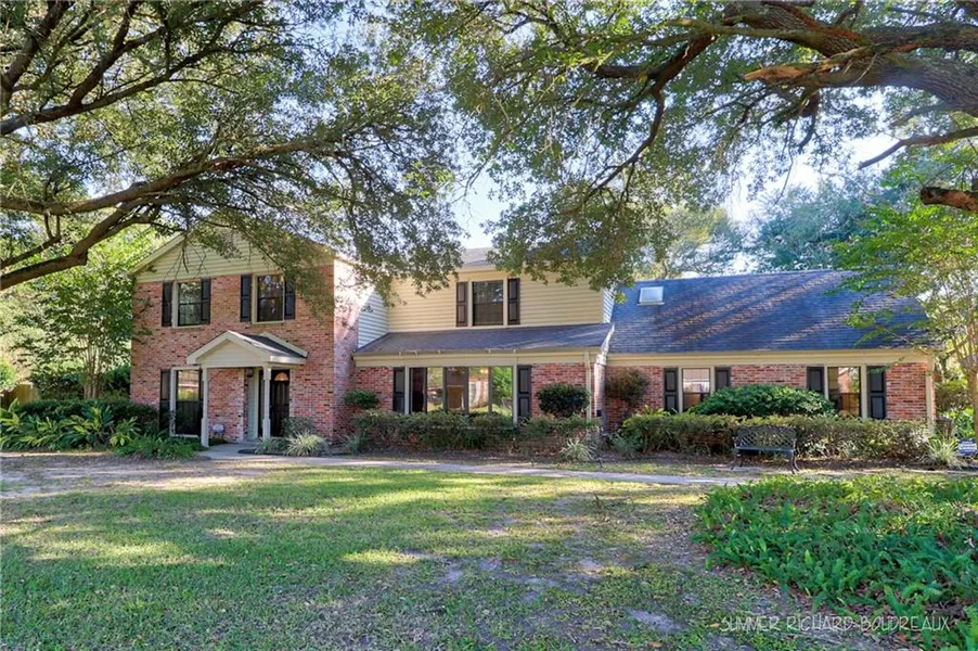 Hard to find! Centrally located, this two story traditional situated on 2 lots with beautiful oak trees has it all! Two living areas, five spacious bedrooms and 4.5 baths. Many updates throughout with a beautiful kitchen with granite countertops and stainless appliances leading to side porch that opens onto the inground 16 x 32 pool with gazebo. Family room features full masonry fireplace with french doors opening onto covered back patio and carport flanked by plenty of outdoor storage. Just beyond is a fully self contained 400 square foot pool house and even more additional covered storage. Master bedroom is downstairs with 4 additional bedrooms and 2 full baths upstairs. Privacy fenced back yard and mature landscaping. Over 5400 square feet under roof!