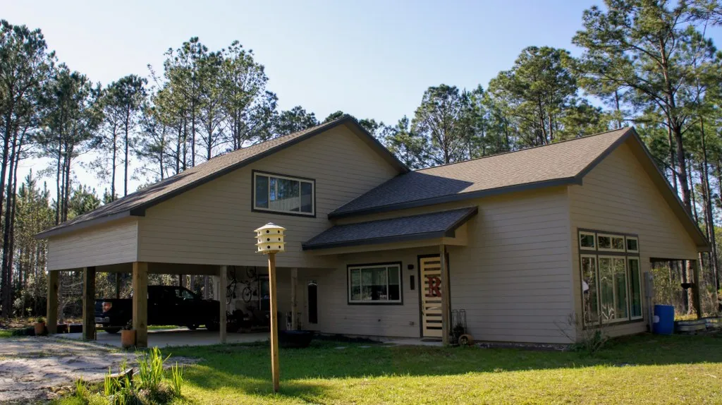 Nestled among the trees on nearly 1.5 acres, this 3 bedroom, 2.5 bath contemporary home offers the best of both country & modern living. Step through the front door into an open living & kitchen area featuring stunning 18' tongue & groove cathedral ceilings & over-sized picture windows. Kitchen boasts a stunning 13' island w/beautiful quartz counters, custom back splash, apron sink, & stainless appliances. Large laundry/pantry w/ample shelving/storage & planned freezer space. Downstairs master includes walk-in closet & bathroom w/ double vanities & custom walk-in tiled shower with double rain shower heads. Upstairs has 2 bedrooms, full bath w/old-growth ash counters & 2 large attics. One of the attics could easily be converted into a play/bonus room. There is no wasted space which is evident through the custom built-ins & storage galore. Exterior features include over-sized carport & large back porch, perfect for sitting outside & enjoying the country setting this home has to offer. MLS#160437