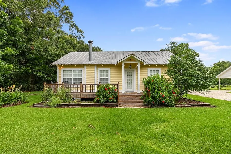 The epitome of a Classic Cottage laden with charm and completely updated. Situated on spacious lot near Old Settlement with 3 Louisiana Sweets orange trees, 5-6 satsuma trees and a pecan tree. Open living concept with fireplace in living room. Kitchen features white cabinetry, granite countertops and stainless steel appliances. Split floor plan with spacious master ensuite. Two additional bedrooms with one full bath. Home is stylishly painted with hard surface flooring and plantation shutters throughout. Front deck and large screened back patio adjoined by open deck and fish cleaning station. Separate one car carport or boat storage with large storage/workshop. Metal roof and natural landscaping surrounded by mature trees enhancing the overall charm of this property.