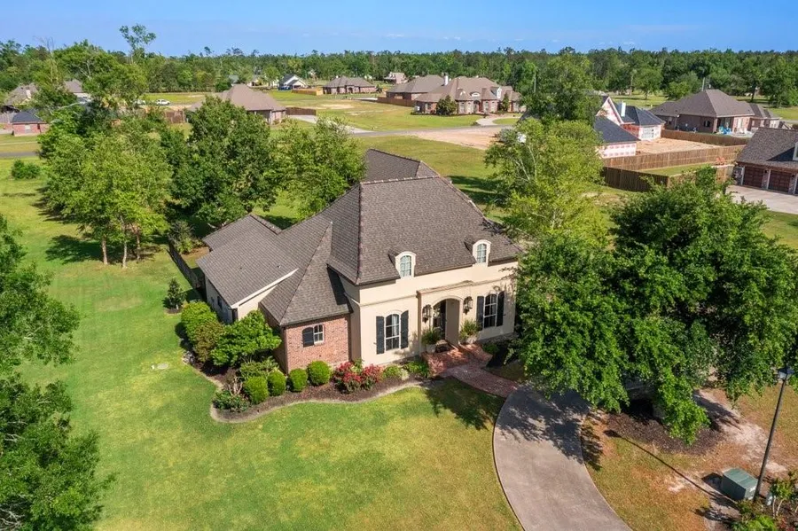 Extraordinary Executive Home in a well-maintained community of beautiful homes. This jewel has designer surface materials and flawless appointments, custom features throughout. Such a sanctuary. Open plan with tall ceilings, lots of large windows, abundant natural light. The master is truly a retreat with separate garden tub and large walk-in shower. Chef's Kitchen with 5 burner gas, tons of countertop prep space, huge gathering island, abundant storage, wine bar, and keeping and breakfast area. Two residential lots at 1.22 acres m/l, shady trees, large underroof patio, 3 car oversized garage. Public water, Mechanical sewer. Flood Zone AE. Taxes $2654.