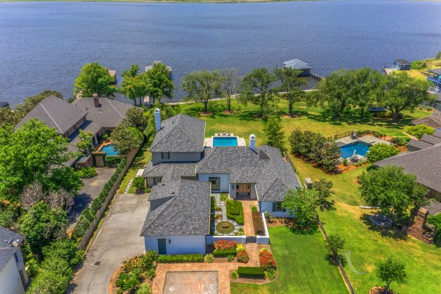 Rare opportunity! 1.57 Acre on Prien Lake with incredible views! Gated Community! Resort like living with 115 feet of waterfront with bulkhead and boat dock, heated and chilled in-ground pool, hot tub, gas fire pit, outdoor kitchen, and huge outdoor porch with incredible views of the lake! The floor plan includes a first-floor gourmet kitchen with a large island, butler’s pantry, keeping room with fireplace, family room/dining area with fireplace, wood beams, office with built-in bookcases, and antique wood floors that vary in widths (LOBLOLLY PINE from beams taken from 100 plus year old wooden warehouse that was being dismantled for salvage outside of Charlotte NC). The first floor also features two en-suite bedrooms; one of them with lake views. On the second floor you will find a large multipurpose space (could be used as a game room, media room, additional bedroom, etc), a wet bar, a...