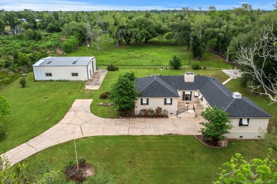Situated on 3.8 acres in Big Lake surrounded by mature trees including oaks, pecan and satsumas. Custom built and elevated in 2009. Living room features a full masonry wood burning fireplace with a separate formal dining room. Sunroom overlooks a lush private backyard. Kitchen has handsome custom wood cabinetry flanked by a breakfast/keeping room. Three bedrooms with two full baths. Primary bedroom with ensuite with soaking tub. Hall bathroom has pedestal sink, walk in shower and separate makeup vanity. Single car garage with wheelchair lift. 40 x 50 metal shop with overhead door including a half bath. Minutes from Big Lake recreation and fishing. Nicely landscaped and well maintained one owner home.