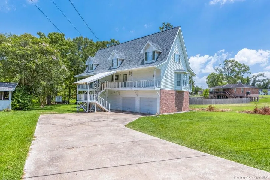 This waterfront home on Backbay Bayou is a must see! This charming Acadian style home with its abundant space and open concept is perfect for large gatherings. The kitchen with its updated granite countertops flows gracefully into the living room and dining room areas with updated vinyl flooring. Two beautifully placed French doors invite you to walk out onto the wrap around porch overlooking the water to enjoy a moment of tranquility. The master suite boasts its own French doors with access to the wrap around porch and bay window as well as a garden tub, and separate shower. In the upstairs area you will find three separate bedrooms with spacious closets, a small office with a closet, and a bathroom. Sellers installed a lift/elevator to this property! It's a wonderful convenience for sending up groceries, appliances, supplies and people up the lift. Enjoy some leisure fishing, boating, ...