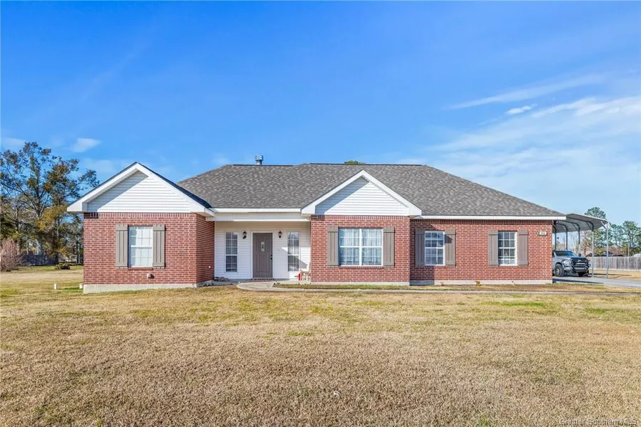 Charming well constructed 3-bed, 2-bath brick home on nearly 1 acre of land in the heart of Moss Bluff! This home is move-in ready featuring a split floor plan with the master on the separate side of home. The master suite displays tray ceilings and the master bath features freshly painted cabinets, jacuzzi bath tub and separate shower, dual sinks, and an added vanity area for getting ready. Cozy up by the brick wood burning fireplace in the living room and enjoy the beautiful vaulted ceiling. The kitchen cabinetry is freshly painted with a modern sink faucet with a breakfast area and also a formal dining room. Enjoy outdoor living with a fenced large backyard perfect for entertaining. The garage features a 2-car garage and the added convenience of a large RV or boat storage with electrical hookups. Home located in Flood Zone X which typically doesn't require flood insurance. All measurements are M/L. Don't miss your chance, schedule your showing today to see this beautiful home in Moss Bluff with a large fenced yard!