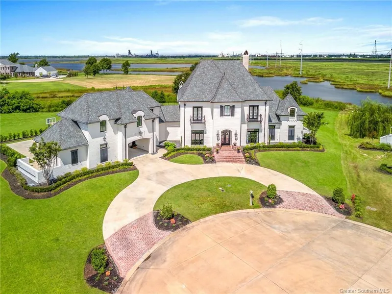 Welcome to Sawgrass, a distinguished residence within the prestigious Graywood Master-Planned Community. This elegant French Colonial home embodies luxury, featuring a circular drive, porte-coch?re, and expansive autocourt, all leading to a meticulously designed smart home. The open floor plan is perfect for hosting gatherings of up to 50 guests with ease.The chefs kitchen boasts high-end Thermador appliances, warming drawers, quartz countertops, and dual oversized islands, seamlessly combining style and functionality. Coffered ceilings enhance the sophistication, while the butlers pantry and walk-in pantry provide ample storage. The living room and primary suite offer stunning estuary and ship channel views, particularly mesmerizing at sunset.Outdoors, a heated gunite pool, spa, and covered porch equipped with a widescreen TV, surround sound, commercial-grade gas cook table, and cozy fireplace create a private resort-like retreat. The primary suite features a chandelier-lit freestanding tub, dual walk-in shower, and spacious closets.Additional highlights include three secondary bedrooms, three full baths, two half baths, an office/library, a versatile theater room with recliners and a kitchenette, and a game room. A four-car garage, basketball court, and 20K generator add to the home's extensive amenities. Architectural guidelines are available at graywoodllc.com.