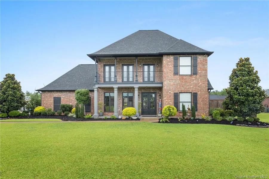 Pristinely maintained two story home situated on spacious lot. A true pride of ownership is apparent in this Country French Traditional. Warm and inviting with brick and wood accents throughout. Living has fireplace flanked by builtins with an open dining area. Well appointed kitchen boasting custom painted cabinetry, eat-in working island, gas stove and built-in refrigerator/freezer. Additional wet bar and coffee station and large walk in pantry. Primary ensuite features a fireplace and luxurious bath with an incredible closet. Upstairs features two additional ensuites and a second living area leading to the balcony. Three car garage plus additional covered parking/storage. The oversized and privacy fenced backyard has a gorgeous gunite pool with hot tub and a covered outdoor space that includes an outdoor kitchen and living area with yet another fireplace. Hard surface flooring throughout with neutral colors. Beautifully landscaped. Nothing to do but unpack and enjoy!