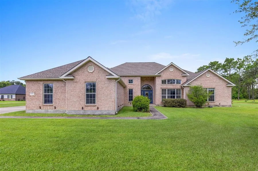 Quite the find in Moss Bluff! This large, 4 bedroom, 3 bath, one story, brick home on slab built in 2003 and on 1.5 acres seems to have it all. The home radiates pride of ownership and is move in ready. The rooms of this split floorplan with ensuite master bedroom and formal dining room are large, the windows allow generous natural light, and the tasteful luxury vinyl plank throughout is new. The master bath offers tub and separate shower. The abundance of storage in this house is staggering. The 50 year shadow line architectural shingled roof is new in 2020. The softened interior is relaxing with some fresh paint in neutral colors. The wood burning fireplace and the 24 x 20 covered patio are so nice for entertaining gatherings. At the back of the manicured 1.5 acres is the 30 x 50 shop to die for complete with shelving and will be delivered empty. Also at the rear of the property are producing blueberry bushes. All of this and sitting high with ground elevation of 24.3 feet in the lowest risk flood zone X least likely to flood and typically not requiring flood insurance by lenders. All measurements are more or less.