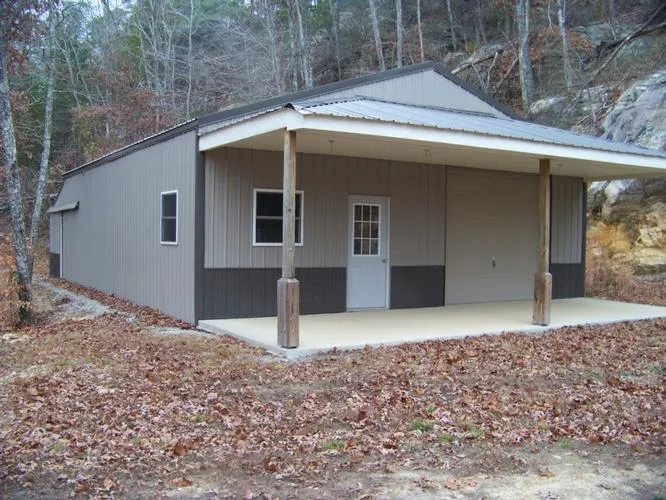 There is a 30 x 40 insulated metal building with a concrete floor on the property. You could easily convert part of the building into living quarters leaving the rest for storage.
