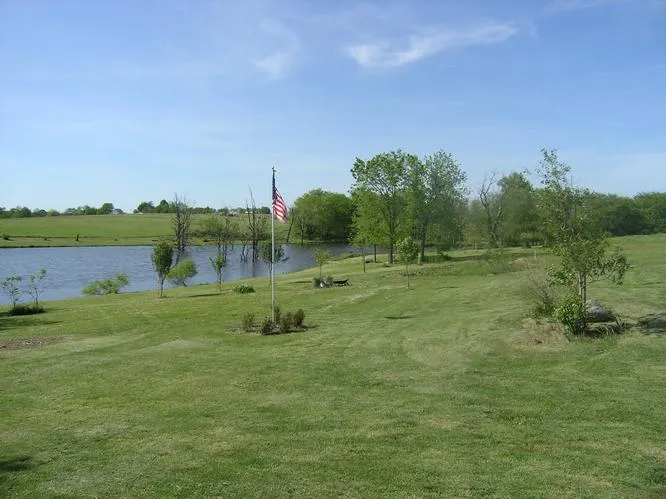3 bedroom 2 bath modualr built in 2005 sitting next to a 5 acre lake full of fish. The home has very little wear on it and there is a large deck off the back of the home where you can enjoy the lake and watch wildlife. There is a32'x46' 2 car detached garage with workshop in one end and concrete floor. The land has 45 acres tilled and 10 acres timber with a small creek running through it. Sit and watch the fish jump and the deer and turkey run around in the fields from the comfort of your large deck. This setting is hard to find with all the extras. There is income from the row crop eitehr cash rent it or farm it yourself or seed it back to grass for cattle and horses.