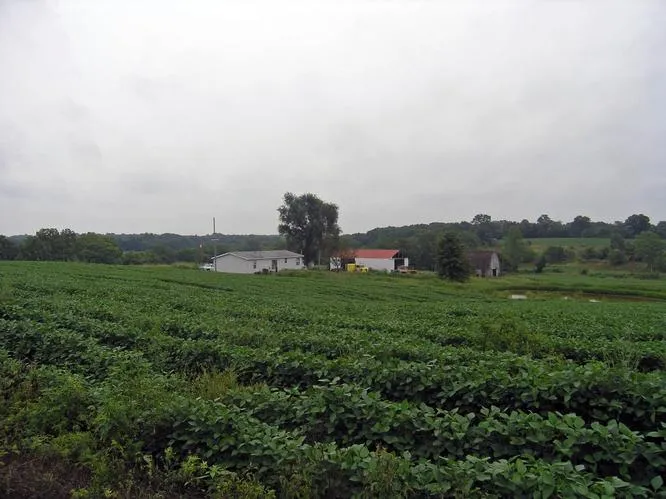There is a machine shed and the property has a road on 4 sides.