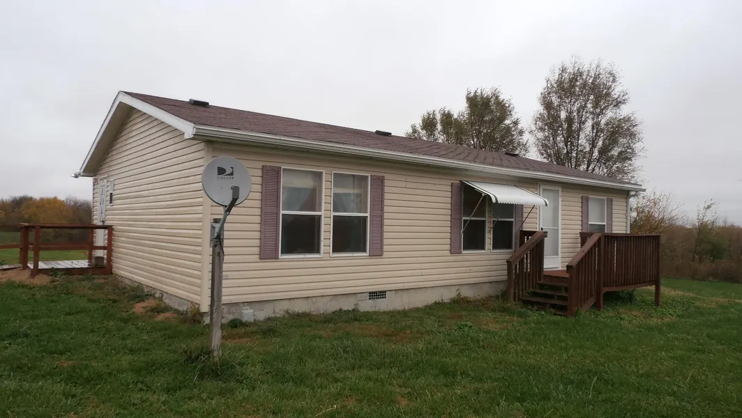 3 bedroom, 2 bath Manufactured home sitting on 5 acres. The home has a poured concrete foundation, vinyl siding and is handicap accessible. There is a nice garden area, a 26 x 36 outbuilding, and blacktop frontage. An added bonus is lots of deer and turkey for you to watch!! Located near New York in Caldwell County.