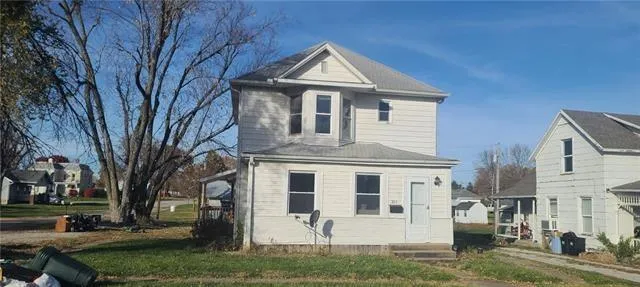 The possibilities are endless with this stately 2 story! Featuring 3 bedrooms, 3 baths, 2 living areas - one up and one down, plus a second kitchen upstairs! Wood floors, large closets, washing machine and dryer hookups on the main level. Nice corner lot location with small detached garage! Needs some finish work. Selling as-is.