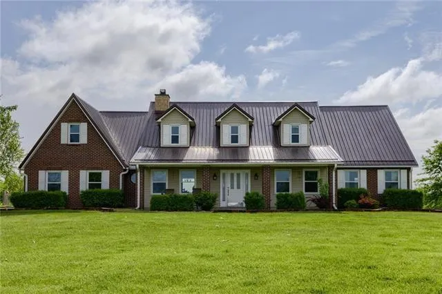 Dont miss this amazing property situated on 10 acres with a large stocked pond and a 30x30 outbuilding! This comfortable home set back from the highway has it all; a roomy living room w/a stone fireplace with an insert, beautiful engineered hardwood floors, and a large open dining/kitchen with granite countertops (appliances included) that has stunning views of the property. You will appreciate the main floor master with an updated bath including a large walk-in shower; 2 guest bedooms and a guest bath and laundry room. The second story offers two oversized bedrooms, a Jack and Jill bath, and a third room - ideally suited for a playroom, office or storage. Outside is best - a screened porch, hot tub, large patio, small storage shed and plenty of room for some livestock! The outbuilding has concrete, is insulated and has 220! FIBER internet service, storm shelter, new septic, a dog fence, and an awesome 184' x 48' concrete pad great for future building! All of this is located on a well maintained state highway with an easy commute to Kansas City or St Joseph! Don't hesitate ~ it won't last long!