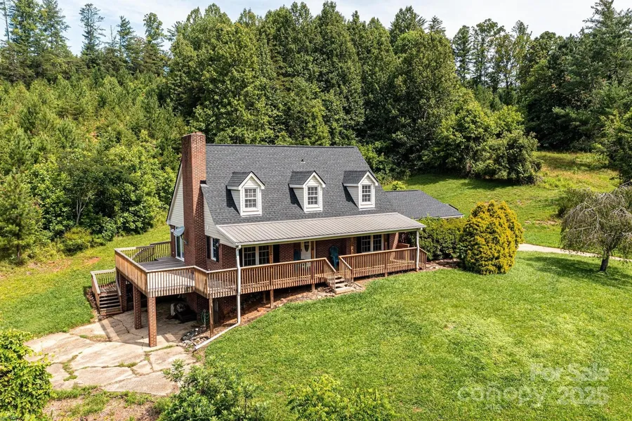 Price Reduction! Charming Cape Cod on 33+/- Acres - Move-In Ready! Updated 3BR/2BA Cape Cod home on approx. 33 acres with full unfinished basement and wooded & pasture land. Home features new flooring and paint throughout, spacious living room with gas log fireplace, large dining area with sliding doors to oversized deck-great for entertaining. Kitchen offers plenty of cabinet space; all appliances stay. Main level includes bedroom, full bath, laundry room, and 2-car garage. Upstairs features 2 additional bedrooms, full bath, and loft area. Basement offers interior/exterior access, wood-burning fireplace, and ample storage/workshop potential. Property includes fenced pasture, paddock, multiple outbuildings, and additional mowed pasture ideal for livestock. Several building sites in wooded area. Recent updates include new decking and porch improvements. Quiet, private setting-must see!