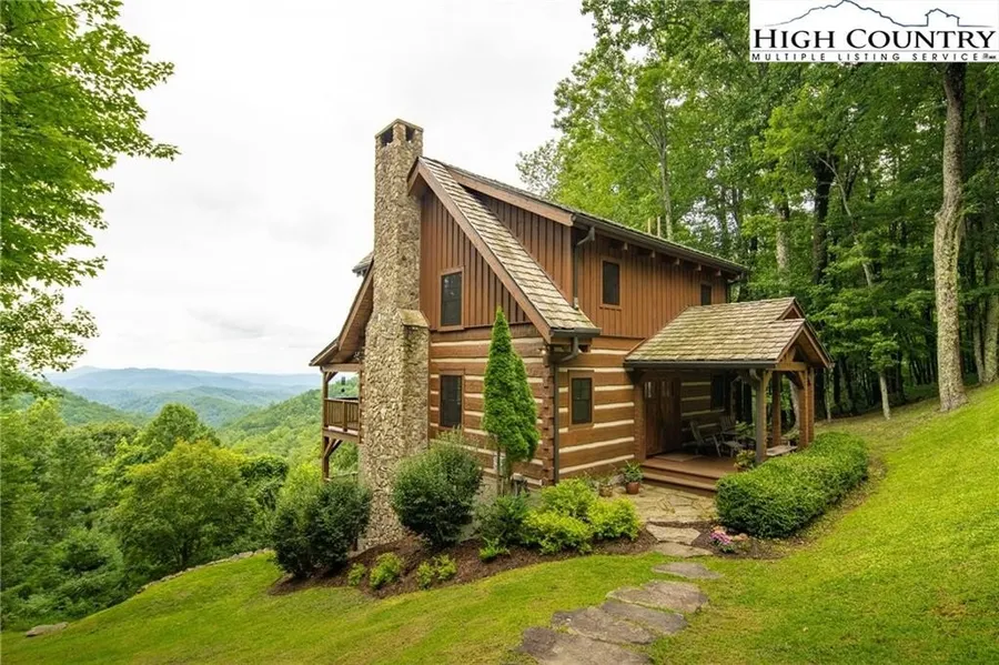 ESCAPE from life’s demands and distractions to a special retreat surrounded by nature. Stunning views, solitude and a sense of calm greet you as you arrive at this home on almost 45 pristine acres only a few minutes from downtown Blowing Rock. Situated on a knoll with endless layered views, this stylish cabin establishes an immediate sense of tranquility. Comfortable outdoor living spaces are a highlight of this special property. The stone outdoor fireplace overlooking the mountain views greets you as you reach the property. Wander down the large natural stone steps amid the naturally landscaped garden to the covered front porch. The cabin is a delight with unique architectural features, including a vaulted, beamed and tongue and groove ceiling, creates a sense of volume. The main level includes an inviting spacious great room, with pull out sofa, a large wood burning stone fireplace...