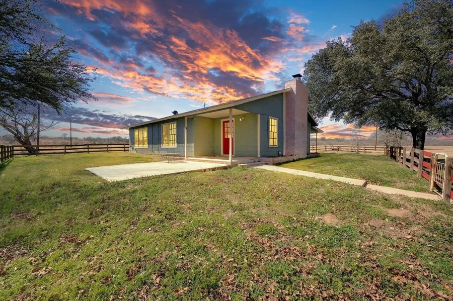 Very well maintained 3 bedroom 1 1/2 bath home with a beautiful view sitting on 22.9 acres! Fully ranch fenced, AG exempt! Improved grasses. Home has open concept with kitchen open to family room. Family room has tile flooring and wood burning fireplace! Beautiful terracotta tile flooring throughout home! Attached carport with nice laundry room and storage room. This property is just outside of Luling, just 1 hour to Austin and San Antonio!