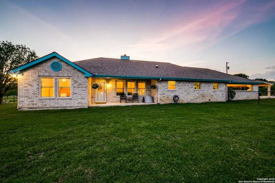 This bright and fresh home is situated on 13.76 acres of gorgeous central Texas land. Gather family and friends in the spacious living area featuring a brick fireplace and ample Anderson windows that allow natural light to pour in. The eat-in kitchen provides plenty of space for the home chef to create delicious meals, with a wonderful kitchen island, stylish cabinetry, and stainless appliances. Enjoy a morning cup of coffee and watch the wildlife from the large bay window. Tranquility and relaxation can be found in the master suite, which offers plenty of space for all your personal touches, and a lovely en suite bathroom with a jetted tub, stand-in shower and solar tube lighting to bring in more natural light. With two secondary bedrooms completing the home, homeowners have endless possibilities to use the space as needed. Bring your horses, cattle, or other livestock. Land is fully fenced and cross fenced with improved pastures as well as Ag exempt for lower taxes. The property also boasts two separate outbuildings that can be used for farm equipment parking or barn space for show animals. Two wells with water filtration feed the home, and there is 676sf of garage space for multiple vehicles. Come and see this beautiful ranch today and make it yours!