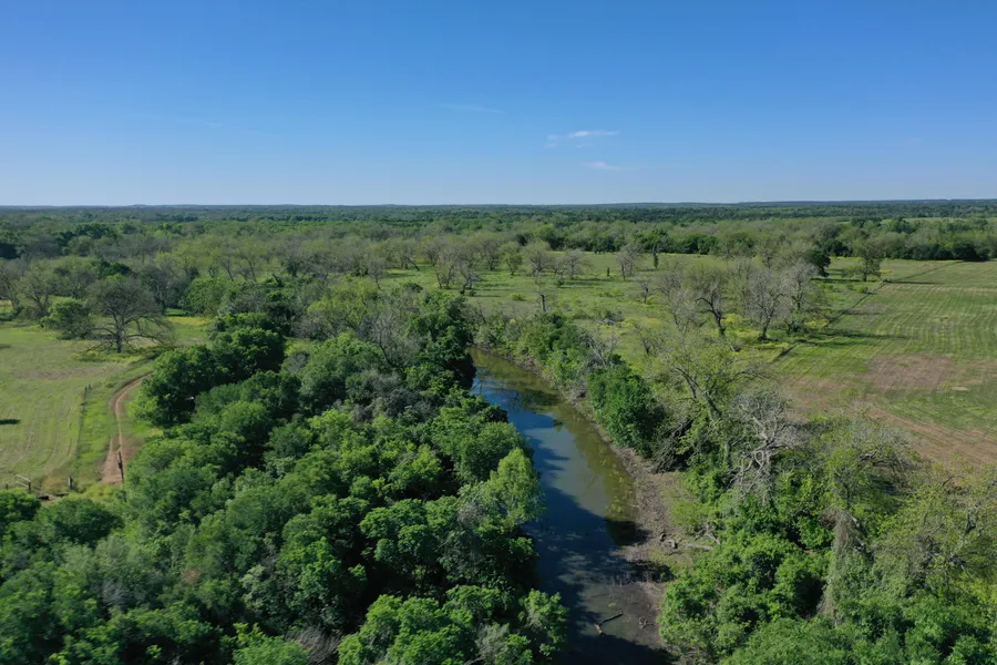 It is clear why this ranch is called the Treetop River Ranch. Absolutely enormous trees can be found from the highest points on the property by the houses, all the way down to the river banks. There are huge pecan trees all along the river bottom, with countless trails to enjoy the beauty. Property also has 80 acres of fields for cultivation, or to leave in native grasses for grazing cattle. The ranch offers a great mix of other hardwoods throughout. Property has a gentle slope descending from the home all the way down to the river.