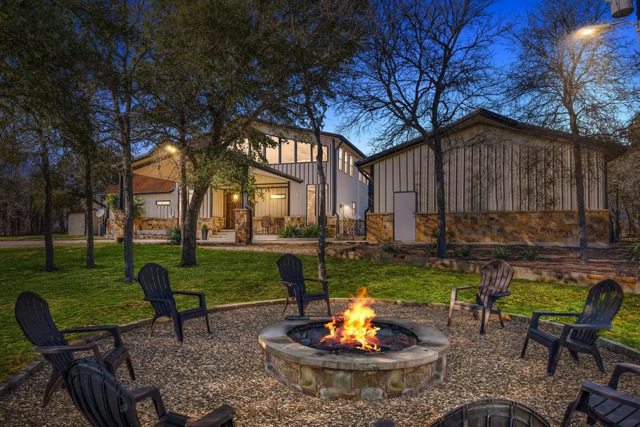 Unbeatable location on the edge of Lockhart. 11 wooded acres with trails for horses, ATVs, or hiking. Incredible sunsets, private setting, paved road with easy access to SH 130 and just a short distance to downtown conveniences, world famous BBQ, live music, fine eateries, and more. This durable solid barndominium offers a high quality industrial/rustic feel with stained concrete floors, exposed metal HVAC ducting, high ceilings, open floor plan, and lots of natural light throughout. The home features 4 bedrooms (2 up and 2 down), 3.5 bathrooms, dining area, breakfast bar, and a large living area. The primary suite features high ceilings, double vanity with quartz counters, soaking tub, separate shower, and a walk-in closet. The kitchen features stainless appliances, kitchen island with granite counters, pantry, and plenty of storage. Right outside the home is a 50' X 30' garage / workshop with 2 (12') entry doors and one drive-through door on the back side. The north end of the shop is rough plumbed for creating your own unique set up or using for additional storage. Outside is fully fenced and cross fenced with a shed and room for a garden, horses, or other farm animals. Make an appointment to view this property today!