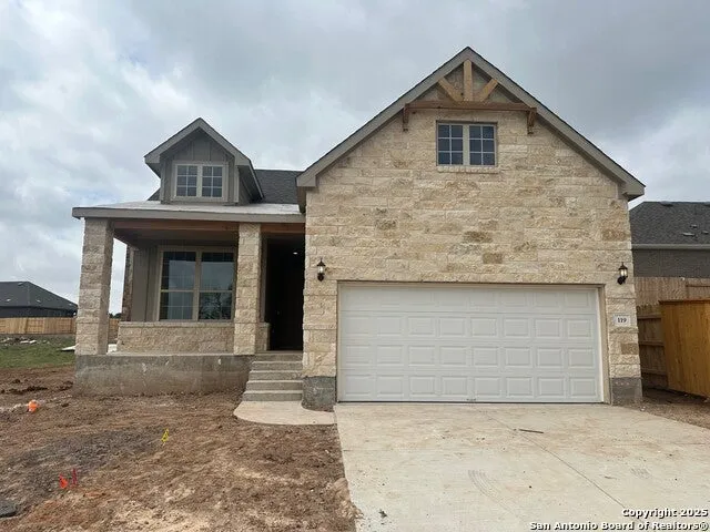 NEW CONSTRUCTION BY PULTE HOMES! AVAILABLE NOW! This brand-new home offers the perfect blend of modern luxury and relaxed living, all within a vibrant community boasting world-class amenities in a community designed for leisure and connection. Dive into relaxation at one of the two sparkling pools or energize your day in the state-of-the-art fitness center. From the moment you arrive, you'll be captivated by the striking full stone facade and inviting extended front porch - the perfect spot for morning coffee or evening chats. Step inside and you are greeted with durable, low-maintenance vinyl plank flooring that flows seamlessly through the foyer, living areas, and even the luxurious owner's suite, providing a stylish and practical foundation for your lifestyle. Indulge in the spa-like experience of the owner's bathroom, featuring a zero-entry walk-in shower with a soothing rain shower head and floor-to-ceiling tile. Prepare to be amazed by the oversized laundry room, complete with a convenient sink, ample cabinetry, and abundant storage - making chores a breeze. The heart of this home is the stunning kitchen, where culinary dreams come to life. Admire the unique and modern custom arctic white backsplash, a signature detail showcased in our model home, perfectly complemented by pristine white quartz countertops and painted maple cabinets. Beyond your private retreat, discover a community designed for leisure and connection. Dive into relaxation at one of the two sparkling pools or energize your day in the state-of-the-art fitness center. Lastly, you can retreat to your expansive covered rear porch and savor the breathtaking panoramic views. This is more than just a home; it's a lifestyle. Don't miss the opportunity to experience the unparalleled charm and luxury of this San Marcos gem. Schedule your showing today and begin your Hill Country adventure!