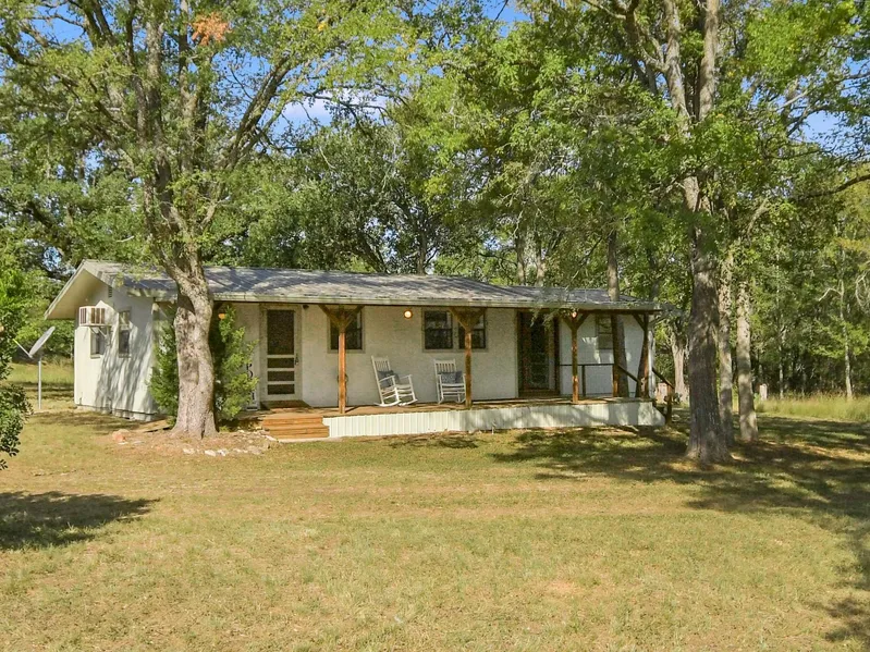 Charming and private one bedroom, one bath home, that has a quaint cabin feel. This property is nestled on a 1.78 acre tract of land. Has built in storage, large livingroom, large kitchen with ample cabinets for storage, full remodeled bathroom with walk in shower. This home features a large front porch so that you may sit out in the peace and quiet and enjoy your favorite beverage and unwind. Features a metal roof for easy maintenance and great sound for those rainy Texas days. Property features large mature trees. Owner has recently updated with new flooring, new sheetrock, new paint, new shower, etc. Located just off FM 20 for easy commute as the SH130 toll road is located just minutes away, 30 minutes from TESLA, Austin airport or downtown Austin. Own your little piece of Texas today. Another parcel that adjoins this one is for sale also. It is a total of 2 acres.