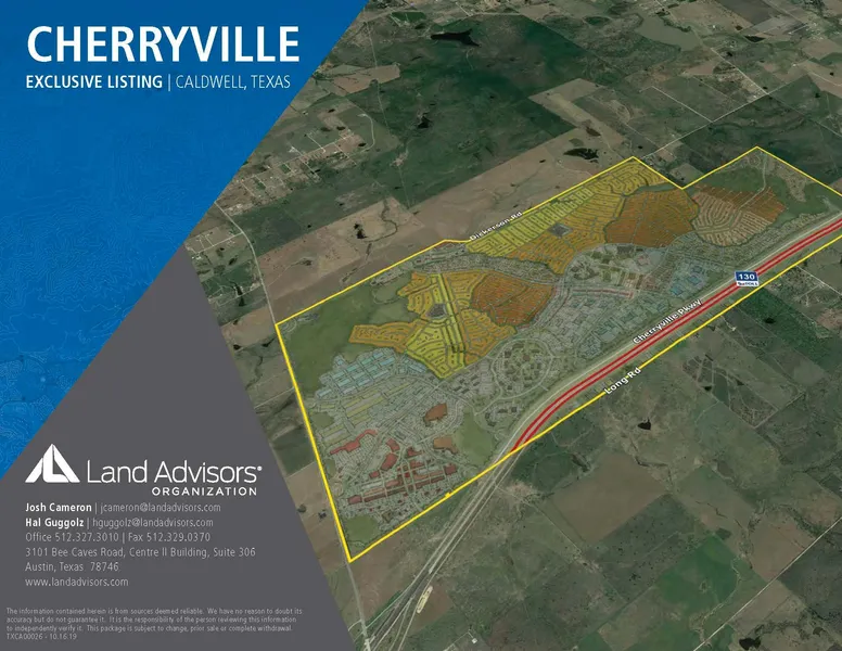 LOCATION: Cherryville is located at the intersection of State Highway 130 and State Highway 80, just 7 minutes south of the city of Lockhart and 10 minutes east of San Marcos. The property is a prime location conveniently situated between several large MSAs: Austin (40 minutes) and San Antonio (60 minutes).