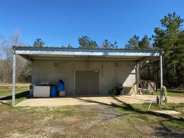 Improvements - Manufactured home with steel covering shed and additions that sleeps 10 comfortably. It has an outdoor kitchen area attached with a covered shed. Also includes two RV hook-ups and concrete shed for storage and deer processing.