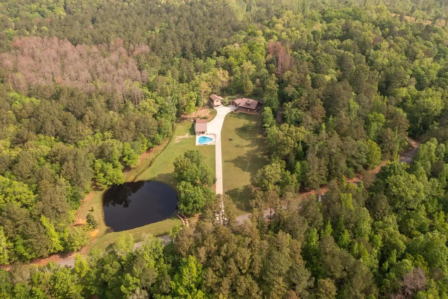 This 4-bedroom, 3.5-bath log home offers the perfect mix of rustic charm and modern amenities on 7.24 acres in Calhoun County. Featuring a striking spiral staircase, spacious living areas, and custom finishes throughout, the home is designed for both comfort and style. Outdoors, enjoy an in-ground pool with a dedicated pool house, plus a detached garage with a private 1-bedroom, 1-bath apartmentideal for guests, extended family, or rental income.