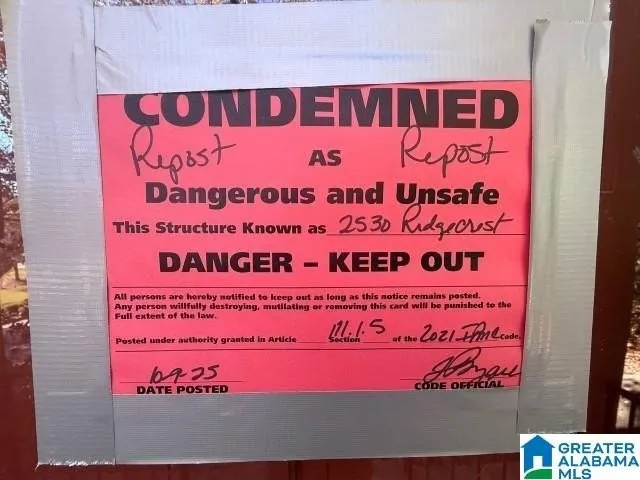 Apx .44-acre lot in the Lake Louise Subdivision. The home on site has been condemned and should not be accessed under any circumstances. According to the previous owner, the rear wall of the structure was completed without rebar, which led to its collapse. All offers must be accompanied by the hold harmless included in this MLS. The buyer will be responsible for any liens and fees associated with the condemnation.