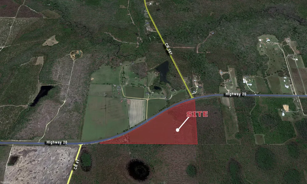 Mixture of pasture land and timberland with over .5 miles on Highway 20, just west of Clarksville, Florida. Contains a storm damaged home that will need to be demolished. The homesite has a well and septic in place.