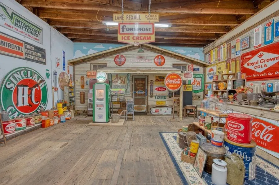 The commercial building sale includes two additional storefront buildings and an apartment on the adjoining city block. The first storefront building has 4498+/- sq ft and large display windows on the front. It is currently used as an antique museum. The walls are covered with pine milled from local trees and vintage rusted tin. The other storefront buildings total 7118+/- sq ft and are currently used as an antique shop. The property appears to be one building from the outside but is divided on the inside with access to both sides. Initially, the building was used as a grocery and dry goods store. Each store would make a great restaurant, apartment, or retail store. The apartment was a former bank constructed in the Folk Victorian style in 1902. It has a rich history of housing several different businesses throughout the years. It retains its cast-iron columns, transoms, co...