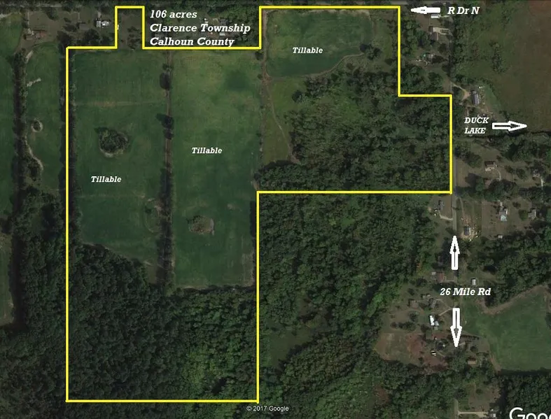 Calhoun County is one of Michigan's BEST for harvesting a quality whitetail. This 72 acres +/- has everything that is needed to attract and hold an abundance of wildlife. Woods, tillable AG fields, bedding areas and water. A stream feeds into nearby Duck Lake. This property is just 10 - 15 minutes north of Albion / I-94 for easy access from the SE or SW parts of southern Michigan. With some habitat improvements this could be a phenomenal parcel for deer and turkeys. QDM area.